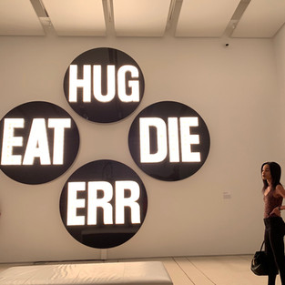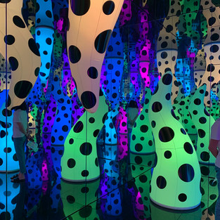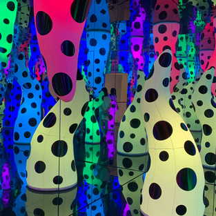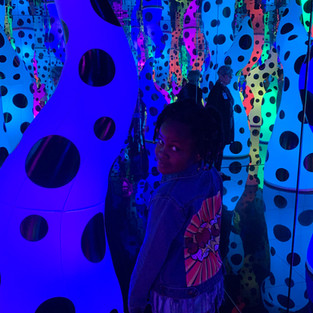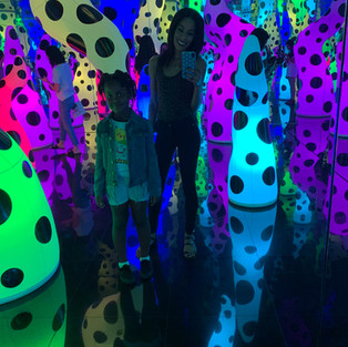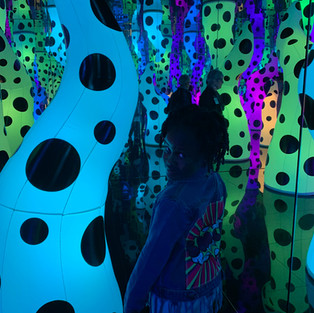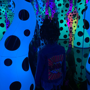 Now it was time to get to what we actually came for! We wanted to save the best for last. After reading about the exhibit while in line, we entered Kusama's curated room and Jadey lost her mind! So did I! LOL it was sensory overload in the best way possible - constantly changing, vibrant colors, paired with polka dots and a completely mirrored room.