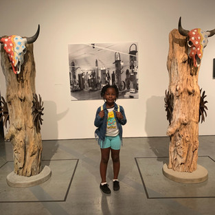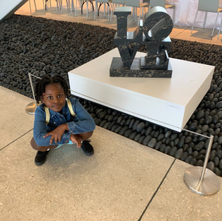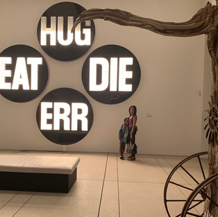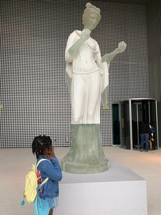 I had my 7 year old sister, Jade, accompany me to the "Love Is Calling" exhibit on February 10th, 2019 at the Tampa Museum of Art. She's already been to the Glazier Children's Museum next door, so I thought this would be a cool new experience. In case you've been living under a rock, it came in September 2018 and ends today on Valentine's Day. From the moment we entered, she was fascinated with the beautiful museum architecture and we hadn't even made it into the galleries, yet. She's in the gifted program and is wicked smart, so I do my best to stimulate her creative side. Their minds are like sponges and I only want her absorbing things that'll enhance her. Taking her was the best decision ever! There were several moments when she was in complete awe. Her jaw-dropped as she gazed up at Aphrodite Reimagined towering over her. I was even in awe at the new modern take on the Greek statue.